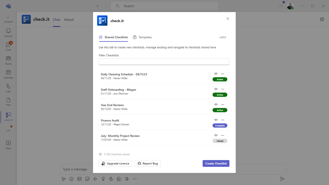 check.it is a tool to enhance collaboration, consistency, and productivity for organisations. It allows for improved management and visibility over processes and projects, such as onboarding, event management, training, etc. Many organisations use spreadsheets or isolated systems to track progress, check.it allows for the creation of templated checklists which can be shared and updated across Microsoft Teams in chats, groups and channels.